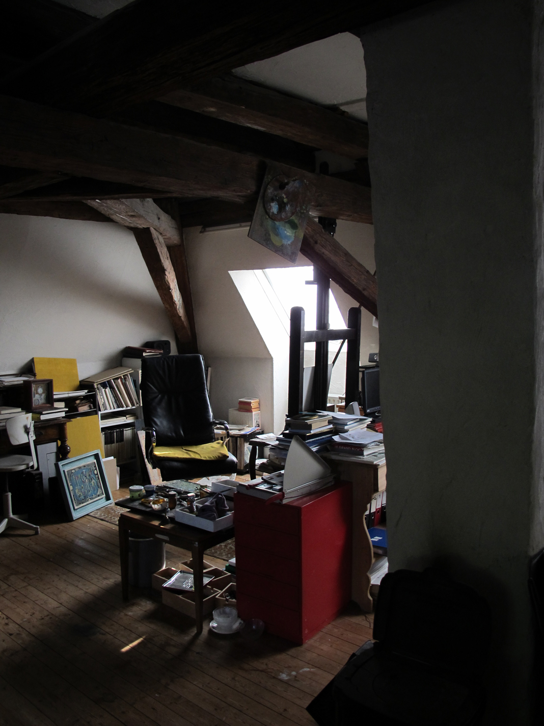| Das ehemalige, protestantische Pfarrhaus wurde 1785/86 nach Plänen von J. G. Sommer an Stelle des reformierten Pfarrhauses erbaut. | ![]() Hellmut Culmann, der Vater von Otfried H. Culmann, lebte hier von 1932 bis 1949 als Pfarrer der Gemeinde Billigheim-Mühlhofen. | ![]() Otfried H. Culmann und seine Frau Gabriele erwarben das Haus 1978 und machten es zum Zentrum seiner Phantastischen Kunst. | ![]() ![]() ![]() |