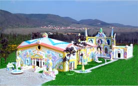 Haltung einnimmt! ![]() Finanzierung: Da das Projekt erst kürzlich der Öffentlichkeit, den Künstlern und Interessenten vorgestellt wurde, kann erst über seinen Standort informiert werden, wenn die Art der Finanzierung durch einen oder mehrere Sponsoren feststeht, die z.B. die Patenschaft (bez. Stiftung) für das Museum oder Teile des Museums übernehmen. Durch seine Konzeption und seine Ausstellungen sollte das Museum sich möglichst selbst finanzieren. Kostenberechnung: Museumsgebäude mit Heizung, Elektrik, Erschließung, Wege, Kanal usw. (ohne Nymphäum, künstlerische Ausgestaltung und Grundstückskosten) belaufen sich auf ca. 800 500 .− Euro ; Die Gesamtkosten dürften sich auf 2-3 Millionen Euro belaufen. Ausstellungen: Die Ausstellungen sind der phantastischen, visionären, neomanieristischen, figurativ- symbolistischen und surrealistischen Kunst vorbehalten. Ebenso sollten Fantasy − Kunst, Kunstrichtungen wie die art-brut ein Forum bekommen. Zwei große internationale Ausstellungen sollen pro Jahr gezeigt werden. Diese Ausstellungen können im Austausch mit anderen Phantastischen Museen stattfinden und sollen sowohl das regionale wie überregionale Publikum ansprechen. Das Museum ist von Ende März bis Mitte November geöffnet und über den Winter geschlossen. In den Wintermonaten, und zwischen den Ausstellungen kann das Gebäude für andere Veranstaltungen angemietet werden. Phantastische Architektur: Vobilder, dass ein Phantastisches Museum nicht nur ein „Luftschloß” bleiben muß, möchte ich am Beispiel anderer phant. Architekturprojekte zeigen, die bereits realisiert worden sind. 1. Das „Palais idéal” des Briefträgers Ferdinand Cheval (1879 − 1912) gehört zu den bedeutendsten phant. Architekturen. Der „Stein des Anstoßes” für diesen Bau − war ein bizarr − figurativ geformter Stein, den Cheval gefunden hatte. Dieser Stein weckte in Cheval einen Traum von einem idealen Palast, den er in 35 Jahren in seinem Garten aus gefundenen Steinen und Beton errichtete. Er ist nicht bewohnbar, sondern nur begehbar. Diese Architektur, die keinen praktischen Zweck besitzt, ist nur für ein optisches Erleben gedacht. Hauterives ist ein kleines abgelegenes Dorf bei Lyon. Das Bauwerk wird an den Wochenenden von bis zu 2000 Besuchern besichtigt. 2. Niki de St. Phalle (1930* − 2002) realisierte in der südl. Toskana einen Tarot - Garten mit gigantischen, phantastischen Figuren, die bewohn-bar sind. Mit Hilfe einer Parfümfabrik, für die sie Flakon entwarf, konnte sie diesen Skulpturenpark realisieren, der inzwischen weltweit Beachtung gefunden hat und der von vielen Toskanabesuchern besichtigt wird. 3. Robert Tatin (1902 − 1983) kaufte sich bei Le Mans (Bretagne) ein her −untergekommenes Bauernhaus, an das er 1962 eine phantastische Architektur (Innenhof, Figurenallee, Ausstellungshalle usw. ) anbaute. Inzwischen hat die Kommune das Gebäude übernommen, den Park erweitert, einen großen Parkplatz und einen Empfangspavillon mit Videoraum errichtet. 4. Bruno Weber (1931*) errichtete bei Dietikon /Zürich zuerst ein bizarres Atelierhaus, dem im Laufe der Jahre weitere phant. Gebäude und gigantische Fabelwesen aus Beton folgten. Mit Hilfe von bis zu 8 Mitarbeitern und verschiedener Sponsoren realisiert Bruno Weber auf einem Gelände von ca. 15.000 qm einen einzigartigen, wundervollen Traum. An Wochenenden kommen bis zu 2000 Besucher. Weitere phantastische Architekturen, oder Häuser phantastischer Künstler befinden sich in Wien, wie das Hunderwasser − Haus, Museum Ernst Fuchs, Figueras Dali- Museum, Belgien Paul Delvaux- Museum usw. „Die Kunst wird bald verschwinden. Sie ist bereits auf so minimalen Ausdruck reduziert worden, dass jeder weitere Schritt ihren gänzlichen Untergang bedeuten würde. Dann wird die Architektur ihren Platz einnehmen. Und innerhalb der Architektur wird sich schließlich mittels der Ornamentik ihre Rückkehr vollziehen.” |